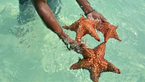 Enjoy music, a Caribbean vibe, and stunning views as we cruise toward the famous Natural Pool, a shallow sandbank in the middle of the ocean where you can swim in crystal-clear waters and spot starfish.